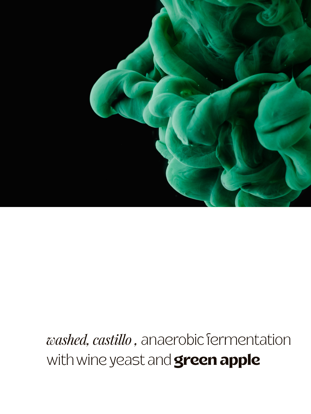 Washed, anaerobic fermentation with wine yeast and green Apple